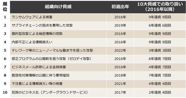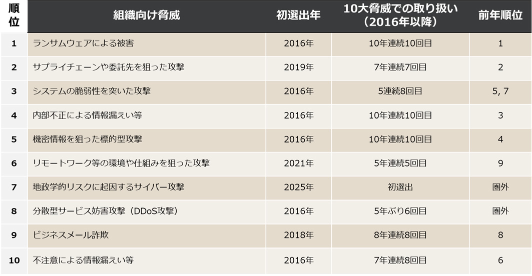 (出典)情報処理推進機構(IPA)「 情報セキュリティ 10 大脅威 2025」