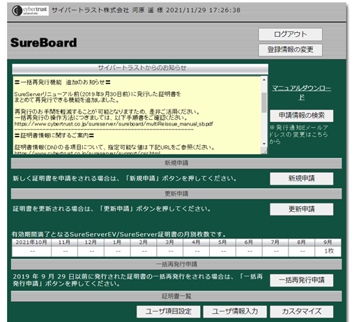 「SureBoard」から SSL/TLS サーバー証明書を申請