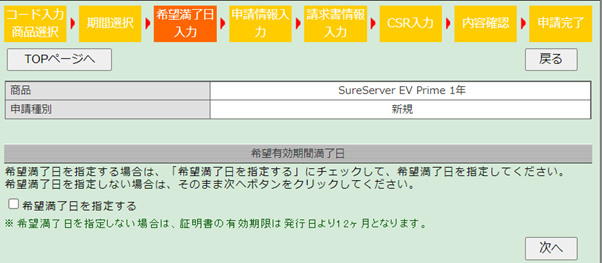 最後に iTrust EV SSL/TLS サーバー証明書 / iTrust SSL/TLS サーバー証明書の発行申請を行います。