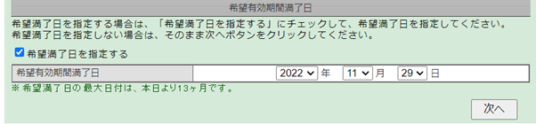 ここで「希望満了日を指定する」にチェックを入れると便利です。