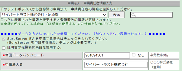 この番号を使ってサーバー証明書の審査を行います。(基本的には、入力した電話番号ではなく、第三者機関のデータベースで確認できる電話番号を使って審査を行います)