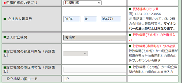 ここで、会社や申請者の情報以外に次の情報を入力する必要があります。