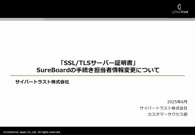サイバートラストの SSL/TLS サーバー証明書のブランド名は、2025 年 6 月 1 日より iTrust SSL/TLS サーバー証明書に変更になっています。