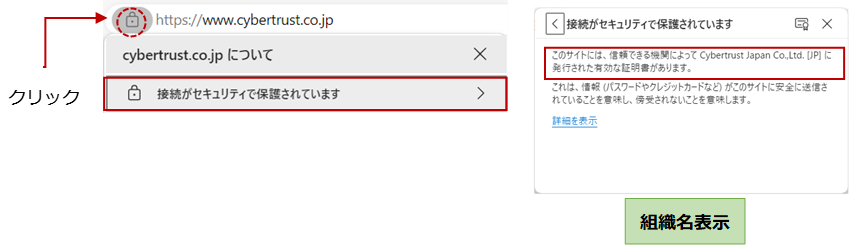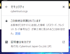 EV サーバー証明書が設定されている Web ページの場合、過去のバージョンの Web ブラウザではアドレスバーが「緑」で表示されていましたが、2024 年 9 月現在はアドレスバーの表示が変更されており「緑」で表示されなくなっています。