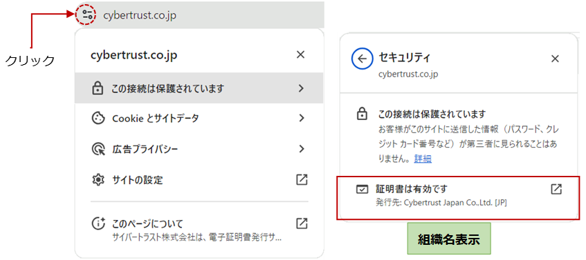 EV サーバー証明書の表示変更
