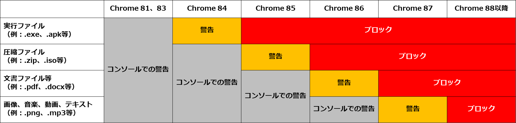 ウェブサイトが「https」であっても、ページ内のリンクに「http」でアクセスするファイルがある場合、改ざんされたファイルが送信されても検知できず、悪意ある第三者によってマルウェアなどへ差し替えられる可能性があるため、これらの脅威からユーザーを保護することを目的として、Google は Chrome における段階的な混在コンテンツの制限を行ってきました。