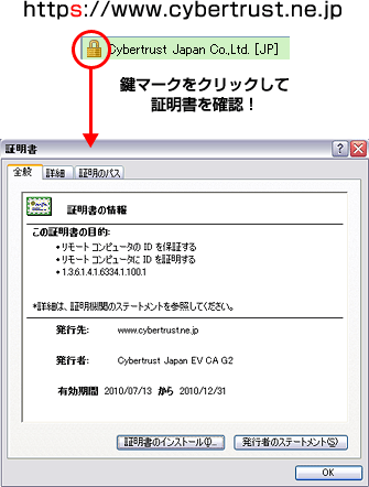 | サイトの実在証明 | サイトの運営組織が実在し、ドメイン名の使用権があることを、サイバートラストが信頼される第三者機関として証明します。 |