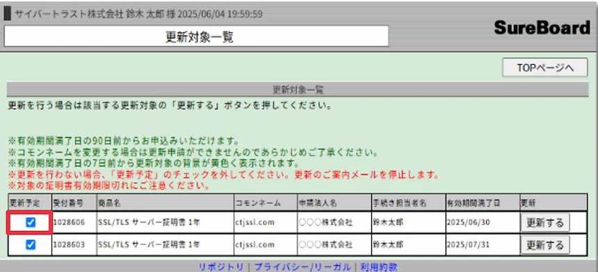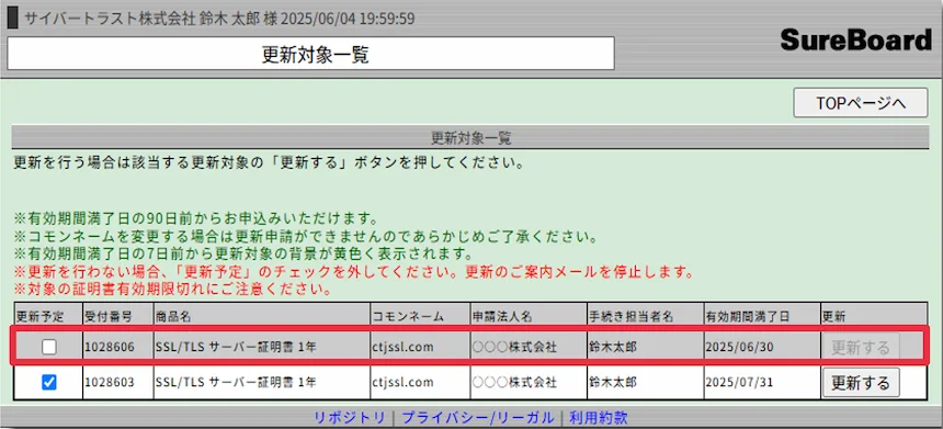 証明書を更新しないのに、90日前や60日前に更新案内メールが届いて困る。 |