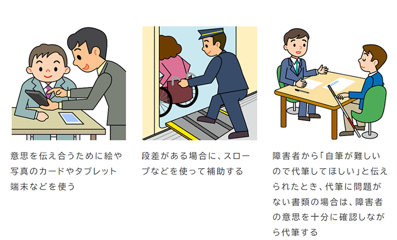 今回の法改正により、行政機関だけでなく事業者 ( 民間企業や NPO など ) に対しても「合理的配慮」が義務化されます。