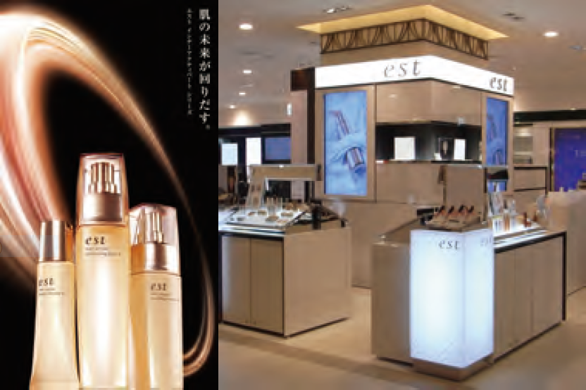 花王様で展開中の製品群の中で、「est(エスト)※1」 は「最上級」を意味し、お客様の最良の肌をひき出したいという願いを持って、先進の皮膚科学に 基づいて開発されたプレステージ化粧品ブランドです。お客様に伝えるビジュアルの美しさにも徹底してこだわり、その品質を忠実に再現する高画質コンテンツ の制作にも注力してきました。このコンテンツ再生に適する機器として、NEC 社製の大画面液晶ディスプレイと、ミラクルリナックスのデジタルサイネージプレイヤー「MIRACLE VISUAL STATION DS302」を採用いただきました。