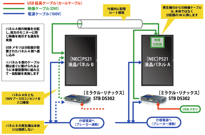 - 電源の ON/OFF のみで管理が簡単、コンテンツの更新もデータ差替えで簡便に
