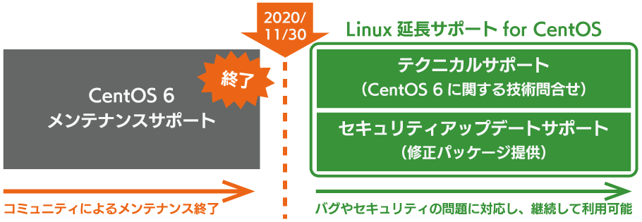| テクニカルサポート(CentOS 6 に関する技術問い合わせ) | 2019 年 5 月 15 日 ~ 2026 年 11 月 30 日 |