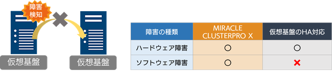 仮想環境/クラウド環境のHA機構と連携して高可用性を実現