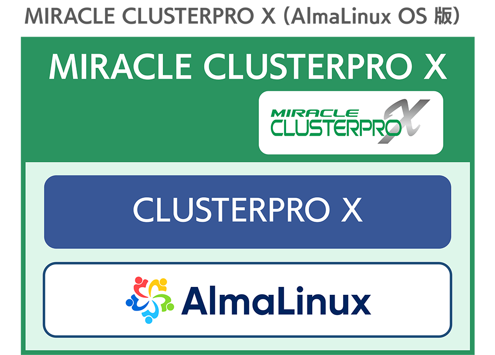 MIRACLE CLUSTERPRO X は MIRACLE LINUX / AlmaLinux OS と CLUSTERPRO X のライセンスおよびサポートをバンドルして提供します。