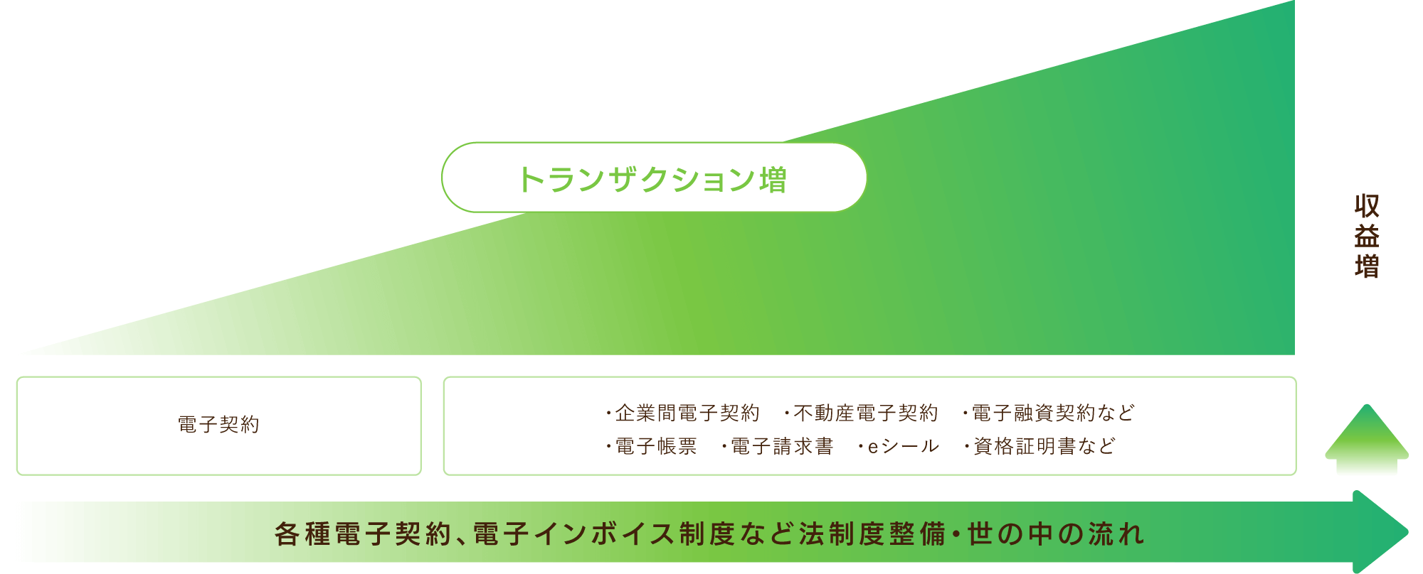 電子署名の利用範囲の拡大によりトランザクションが増加し、当社の収益増につながります。