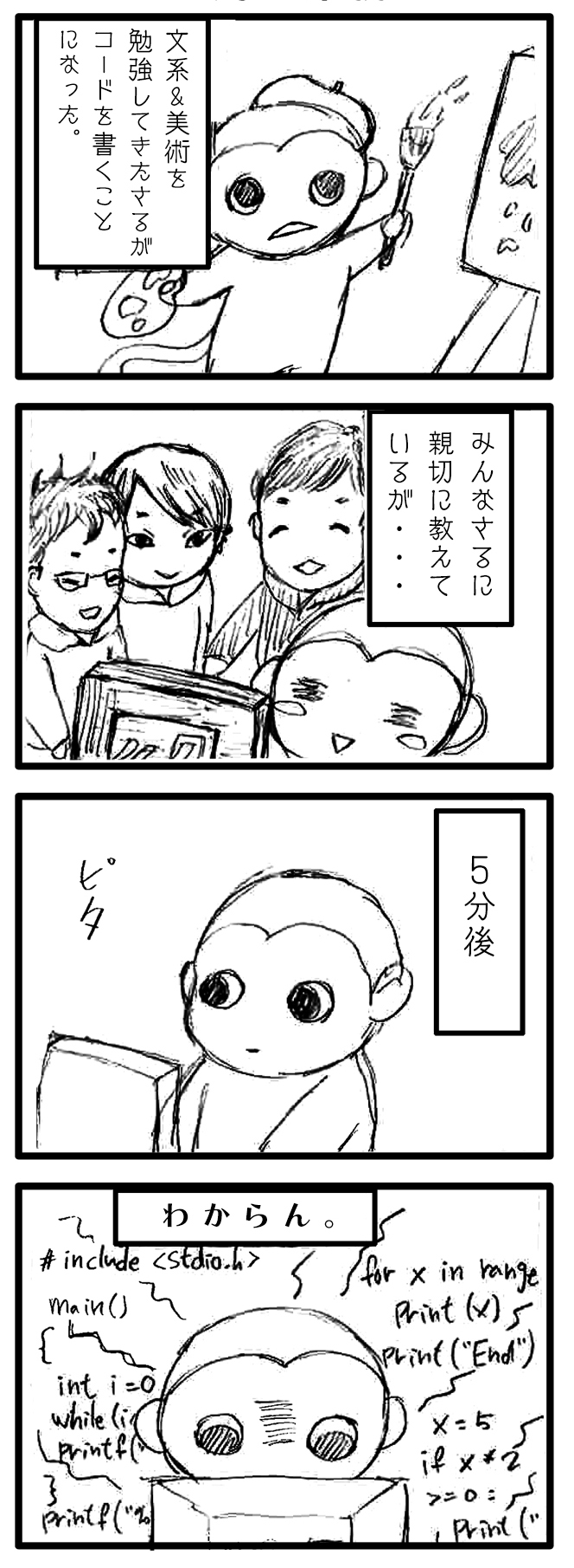 ※この4コマ漫画は新入社員のさる自身が描いた物です。