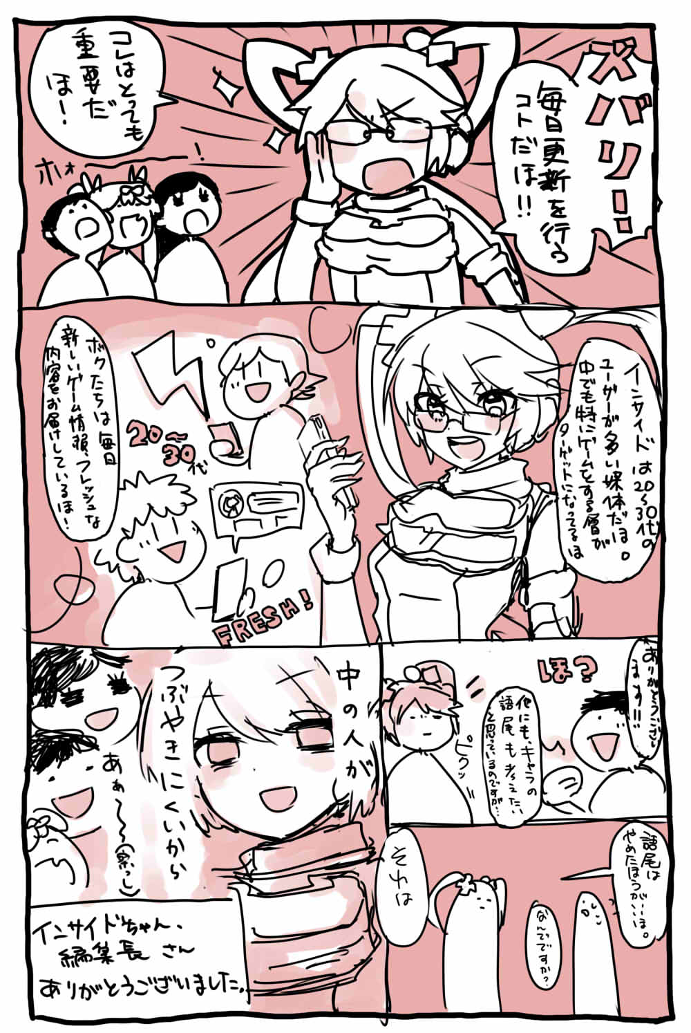 今回訪問を受け入れてくださったインサイド編集部の方々、インサイドちゃん誠にありがとうございました!訪問でご教示いただいた知識経験を糧にキャラクター施策がんばります!ありがとうございました!!