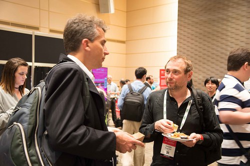 こうして全セッションを終えた後、企業ブースのあったホールにて立食ディナーが振る舞われ、参加者同士で交流する懇親会のようなイベントが開かれました。