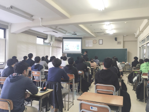 担任の先生のご厚意で、授業の時間、放課後の時間を頂いて、教室で説明会を開かせていただきました。教室がとても懐かしかったです。(一年も経ってないけど。)