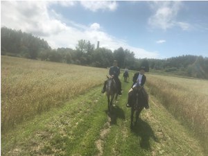 人生初乗馬を経験しました!!初めての乗馬でも、写真のように一人で(手綱を引く人がいない)馬に乗せてもらえます。前日まで雨が続いていたのですが、この日は天気も晴れてすごく気持ちがよかったです。ただし、乗馬後はヒドイ筋肉痛に襲われました。。。