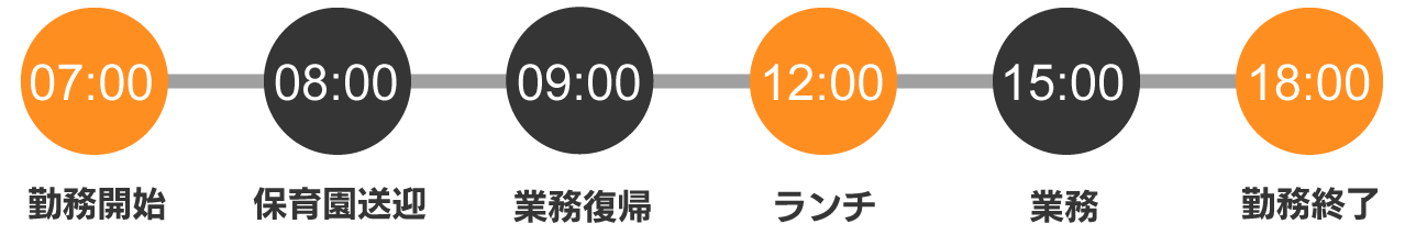 子育てと仕事を両立するためにテレワークとスーパーフレックス制度を利用しています。場所と時間を選ばない働き方ができるので、早朝の7:00頃から自宅で勤務を始めて、途中保育園へ送り迎えで業務を抜けるなど、仕事の時間を子どもとの時間に合わせることができます。おかげで家族と過ごす時間も増えました。