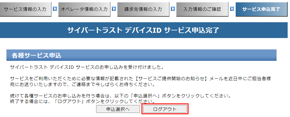 10. [サイバートラスト デバイスID サービス申込完了]画面が表示されます。