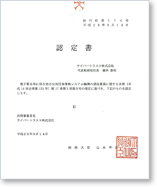 ※ サイバートラストは、2016 年 9 月、公的個人認証におけるプラットフォーム事業者として主務大臣認定を取得しました。