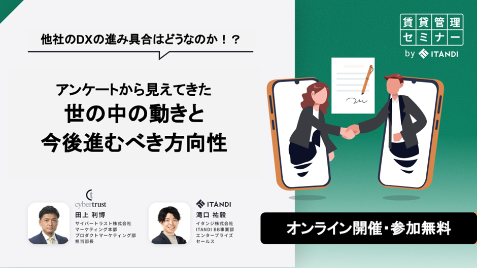【ウェビナー】[不動産取引 DX セミナー]他社の DX の進み具合はどうなのか!? ~ アンケートから見えてきた世の中の動きと今後進むべき方向性 ~【1 月 22 日開催】