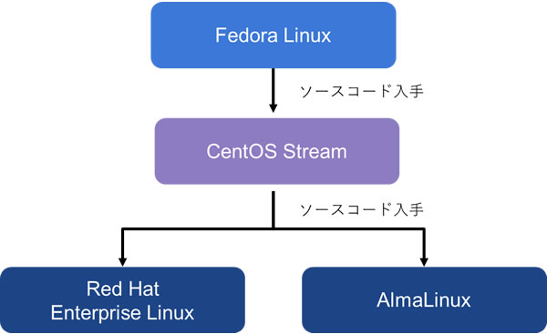 AlmaLinux は CentOS Stream を中心にソースコードを入手して開発が行われています。