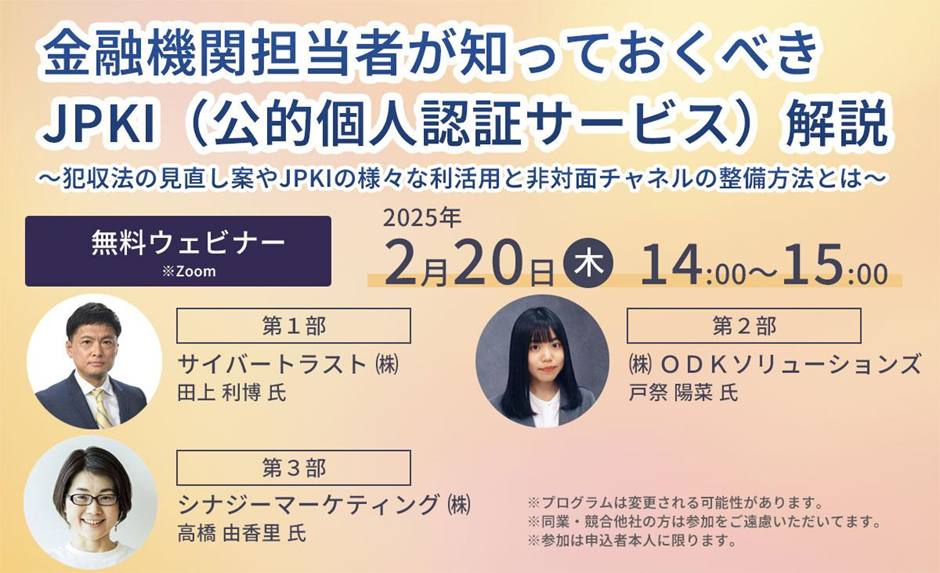 【ウェビナー】金融機関担当者が知っておくべき JPKI(公的個人認証サービス)解説 〜犯収法の見直し案や JPKI の様々な利活用と非対面チャネルの整備方法とは〜【2 月 20 日開催】