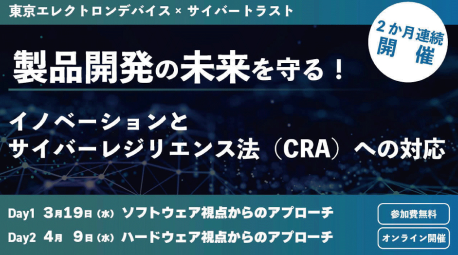 【ウェビナー】製品開発の未来を守る!イノベーションとサイバーレジリエンス法(CRA)への対応 ~ハードウェア視点からのアプローチ~【4 月 9 日開催/Day 2】
