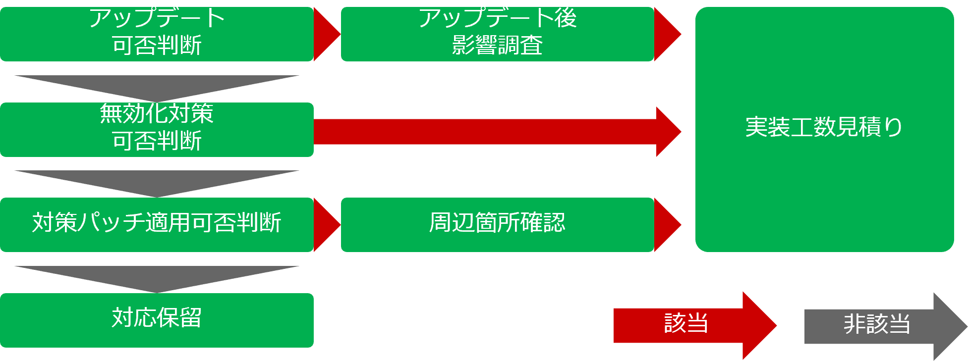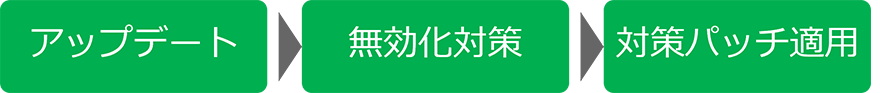 - 選定された脆弱性について、アップデートの適用、設定変更、修正パッチの適用などの対策を行います。