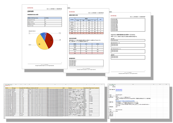 - 専門の診断員がお客様の組込み Linux システムの特性に合わせて脆弱性のトリアージを行い、調査報告書を作成します。