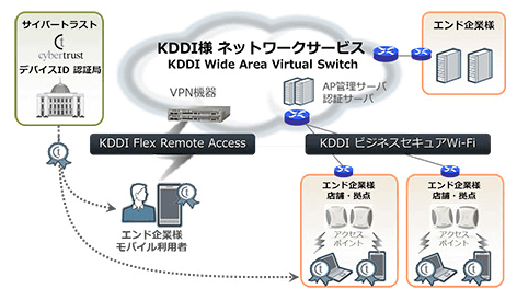 リモートアクセスサービス、イントラネットにおける Wi-Fi 環境の端末認証オプションとして「サイバートラスト デバイス ID」をご採用いただいております。
