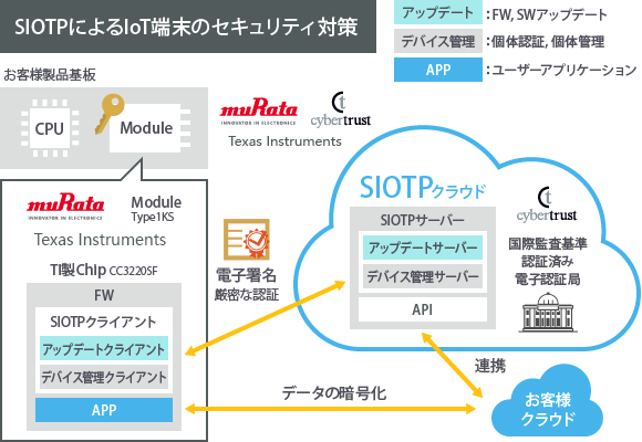 株式会社村田製作所(本社:京都府長岡京市、代表取締役会長兼社長:村田 恒夫 以下、村田製作所)は、サイバートラスト株式会社(本社:東京都港区、代表取締役社長:眞柄 泰利 以下、サイバートラスト)が提供するセキュア IoT プラットフォーム(以下、SIOTP※1)に対応した MCU※2 内蔵 Wi-Fi モジュール「Wireless MCU Modules (Type 1KR、Type 1KS)」(以下、本製品)を開発し、2019 年 10 月より量産を開始します。
