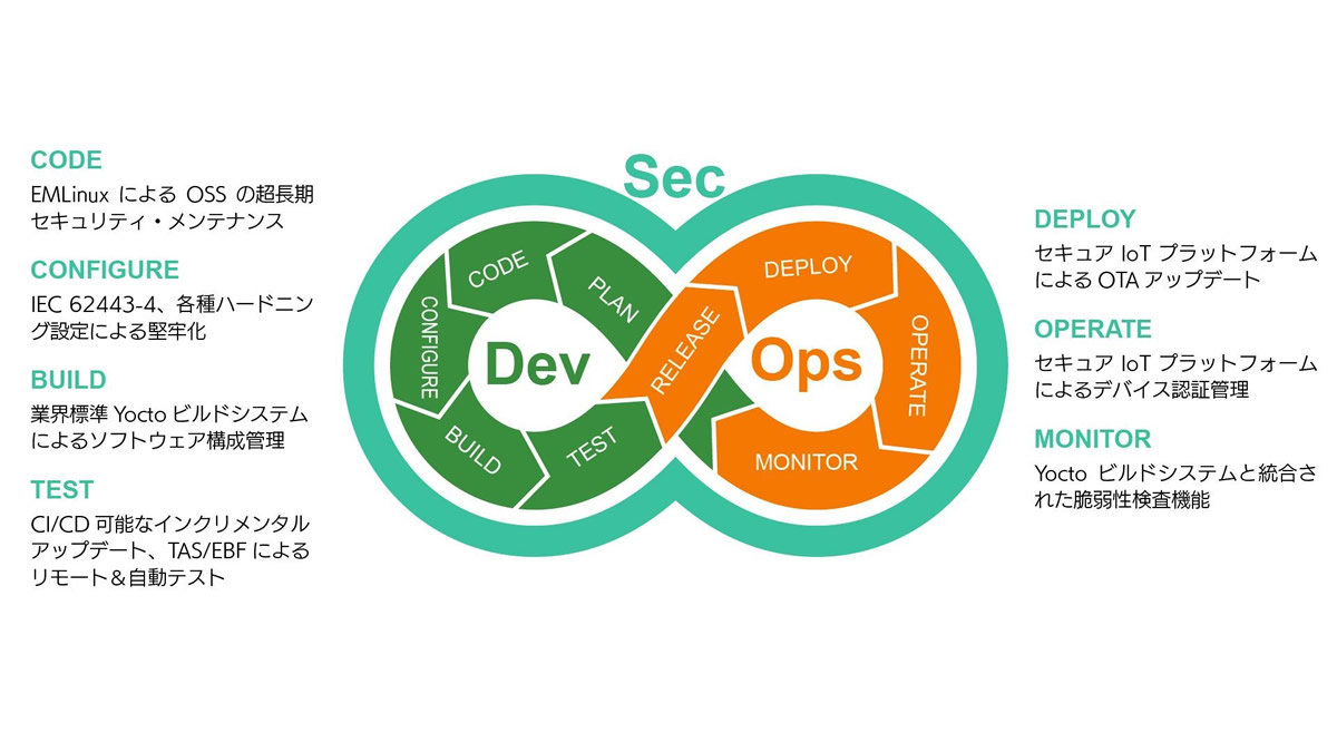 サイバートラスト株式会社(本社:東京都港区、代表取締役社長:眞柄 泰利 以下、サイバートラスト)は、IoT 機器の長期使用を実現する「EM+PLS(イーエムプラス)」を新たにパッケージ化し、セキュアなエッジ AI※1 環境の実現に最適なプラットフォームとして提供開始することを発表します。本パッケージでは、超長期サポート組込み OS「EMLinux」にサイバーセキュリティ国際規格に対応するために必要な認証機能「Secure IoT Platform®※2 」とリモートアップデート(OTA)機能、セーフリスト ※3 防御策などを組み合わせて提供します。IoT や組込み Linux システムの開発・運用で必要とされる各プロセスにセキュリティ対策を組込んでおり、セキュアなエッジ AI 環境において対応が求められるサイバーセキュリティ国際規格への対応を推進することにより、DevSecOps ※4 の実現を支援します。