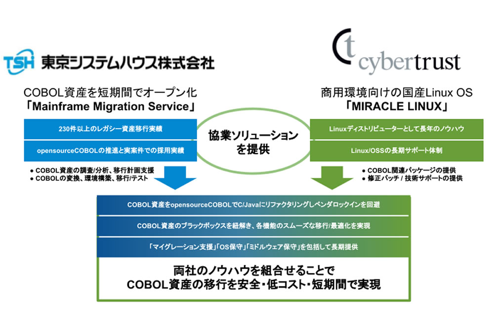 サイバートラストと東京システムハウス、 レガシー化した基幹システムのメインフレーム移行支援サービスを提供開始