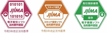 「DigitalWork Accelerator 電子取引管理サービス」は公益社団法人日本文書情報マネジメント協会(JIIMA)の「電子書類ソフト法的要件認証制度」「電子取引ソフト法的要件認証制度」「電帳法スキャナ保存ソフト法的要件認証制度」による製品認証を取得しています。電子帳簿保存法に対応するための法的要件を満たしているソフトウエアとなりますので安心して利用できます。
