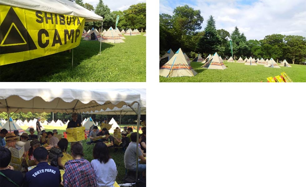 SHIBUYA CAMP 2017 は、都心で大規模な地震が発生したことを想定し、代々木公園での 1 泊 2 日のキャンプを通じて、発災後 72 時間を生き延びるためのスキル = 自助能力の強化を目的とした新しいスタイルの防災訓練です。危機管理の専門家から安全確保・避難に必要な考え方を学ぶ「座学」と、朝・昼・夜と 3 回街に出て、その状況下で被災したことを想定し、避難を行う「ワークショップ」、避難所における判断の確からしさを確認する「フィードバック」で構成されます。