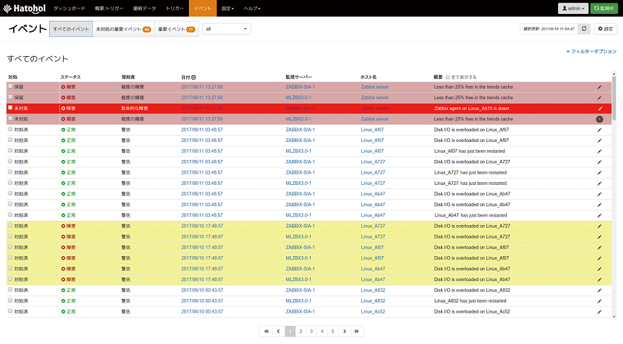 - イベントごとに「対処中」「対処済」など対処状況をマークすることが可能