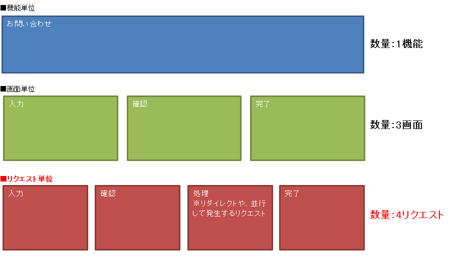 概ねアクション数(ボタン押下など操作の数量)と近似値ではございますが、システムで利用しているフレームワークなどによっても数量の増減がございます。