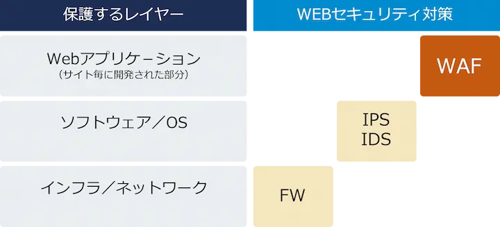 WAF(Web アプリケーションファイアウォール)とは、従来のファイアウォールや IDS/IPS では防ぐ事ができない攻撃から Web アプリケーションを防御するファイアウォールの事です。