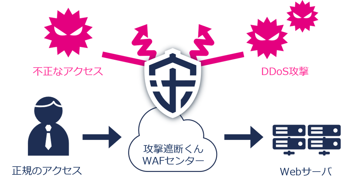 「攻撃遮断くん」は、クラウド型の WAF(Web Application Firewall)製品です。 Web サイトや Web サーバーへの攻撃を遮断し、情報漏えい、Web 改ざん、サーバーダウンを狙った攻撃などの脅威から、企業とユーザーを守ります。 クラウド型の為、保守・運用に手間を掛ける事なく、24 時間 365 日の高セキュリティを実現します。