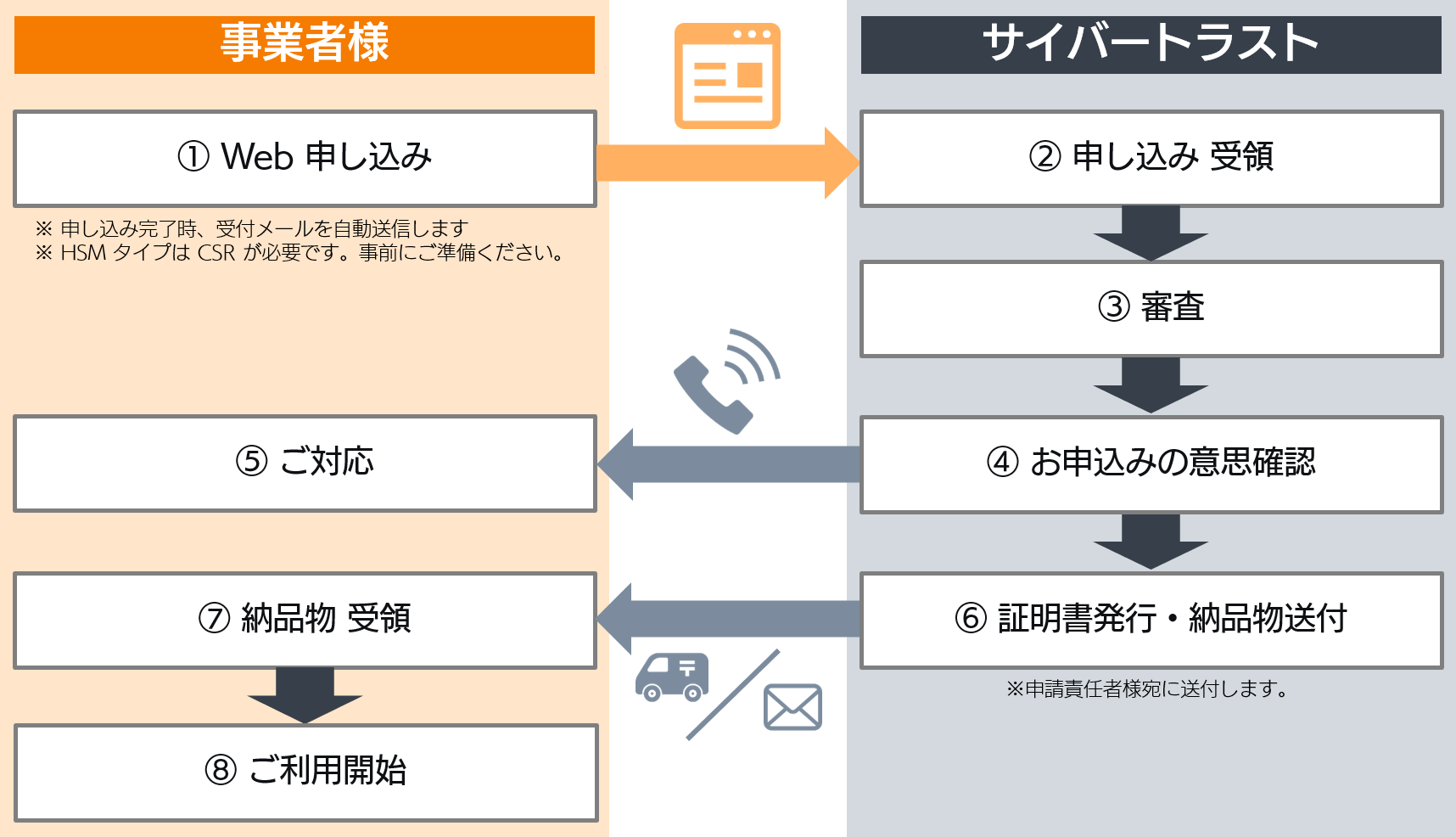iTrust 電子署名用証明書 ご利用開始までの流れ HOME トラストサービス iTrust 電子署名用証明書 iTrust 電子署名用証明書 ご利用開始までの流れ iTrust TOP 本人確認サービス リモート署名サービス 電子署名用証明書 eシール用証明書 iTrust 電子署名用証明書 ご利用開始までの流れ 1 サービスのお申し込み 2 審査・発行に関するお手続き 3 納品 サービスのお申し込み 詳細