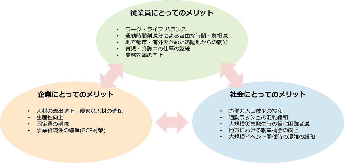 そして上記を実現するための施策のひとつとしてテレワークがあります。