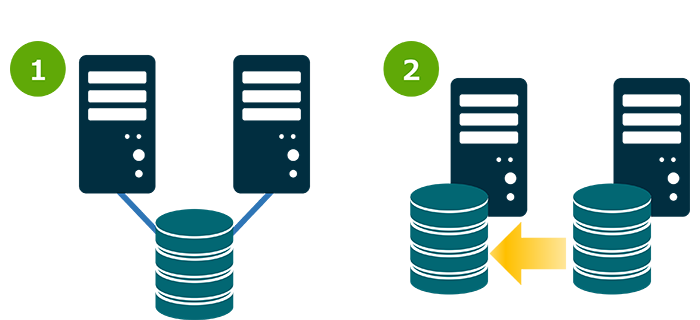 災害対策などでサーバーを遠隔地に配置する遠隔クラスターを構成する場合や、専用ハードウェアを用意できない場合に、共有ディスク構成ではなくミラーディスク構成を選択します。