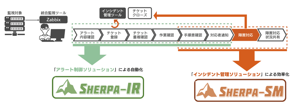 SHERPA-SUITE によるシステム運用自動化ソリューションは、主に2つのソリューションで構成されます。